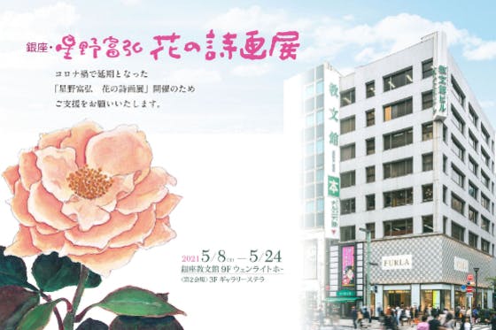 昨年、新型コロナウイルス感染症拡大の影響で延期となった「銀座・星野富弘 花の詩画展」を、今春こそ開催したい。そして、星野富弘さんの“生きる喜び”や“生きる勇気”...