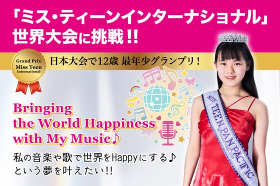 昨年12月に開催された「ミス・ティーンインターナショナル」日本大会で12歳 最年少グランプリをいただき、7月アメリカ・テネシー州で行われる世界大会に代表として出...
