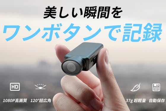 1080P/30fpsの高画質記録に対応し、ワンボタンで映像を鮮明に記録!37g、54*22.5*13mmの超軽量設計で携帯性抜群!120°の超広角レンズを搭載...