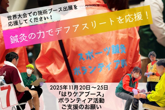 2025年11月におこなわれる「聴覚障がい者の世界大会」での施術ボランティア活動を支えるため、また、鍼灸師の役割を広く社会に発信し認知拡大を図るためのプロジェク...