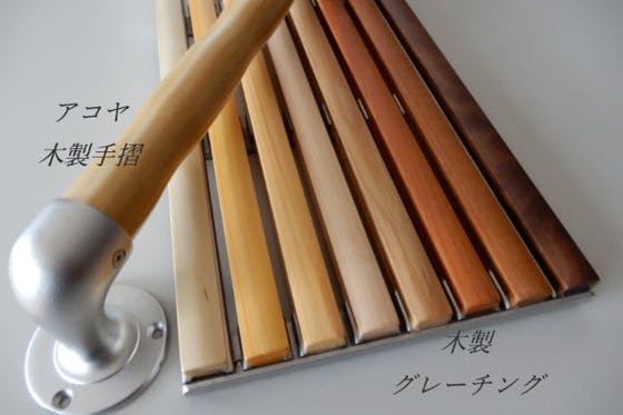 お風呂で天然の木製手摺はほとんど見かけません。そこでSHIMABUNでは在来工法のお風呂で使える純木製手摺を開発しました。水に浸しても腐れない高耐久化天然木材(...
