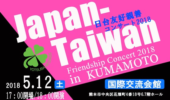 今回で三回目となる日台友好親善コンサート。台湾からゲストアーティストを招待し、2018年5月12日熊本市国際交流会館ホールにて開催いたします。熊本市の名義後援の...