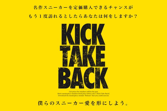 過去に販売された人気スニーカーを定価購入できるチャンスをもう一度! 過去の名作スニーカー定価抽選販売アプリ【Kick Take Back】 購入できなかった...