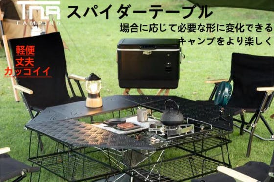 キャンプ・バーベキューで家族・友人・恋人大切な人と、大切なひと時を過ごすために多彩な変化ができる「スパイダーテーブル」。