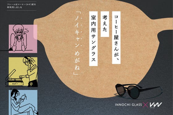 大量に廃棄されているコーヒーかすを資源循環したい!コーヒー屋と眼鏡メーカーの共同開発によって生まれた、コーヒーかすで作られた室内用サングラス「ノイキャンめがね」...
