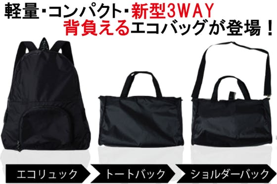 ありそうでなかった3WAY背負えるエコバック。エコリュック・トートバック・ショルダーバックに早変わり!多目的に使えサブバックとして手放せなくなること間違いなし!...