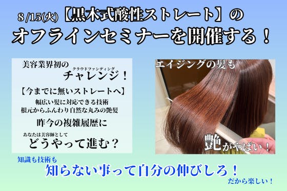 『世界を美しく変える』 黒木式酸性ストレートアカデミー認定講師リアルセミナー。 酸性域ストレートの深過ぎる知識、真っ直ぐストレートの克服、自然な丸みのあるツヤ髪...