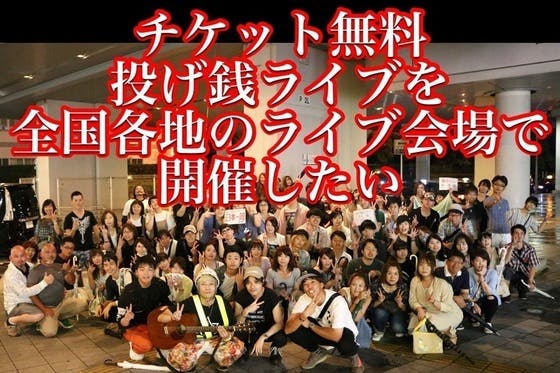 路上ライブからステップアップしてステージへ!会場を借りて入場無料イベントを開催し、いずれ規模を大きくして入場無料のフェスやライブをどデカイ会場で開きたい!その為...
