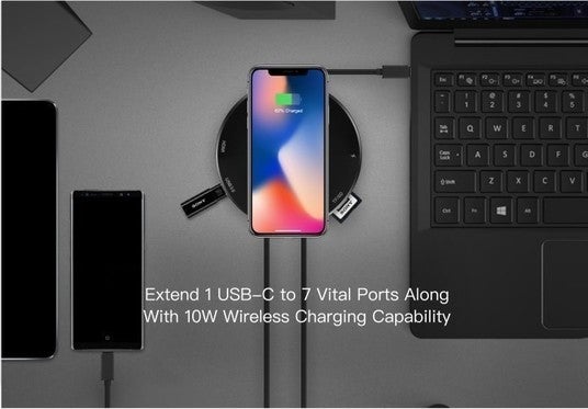 「Soholine G2」は、ワイヤレス充電器と、7つのポート(4K HDMI、microSD、SD、USB 3.0 ×3 、USB-Cパワーデリバリー)に対応...
