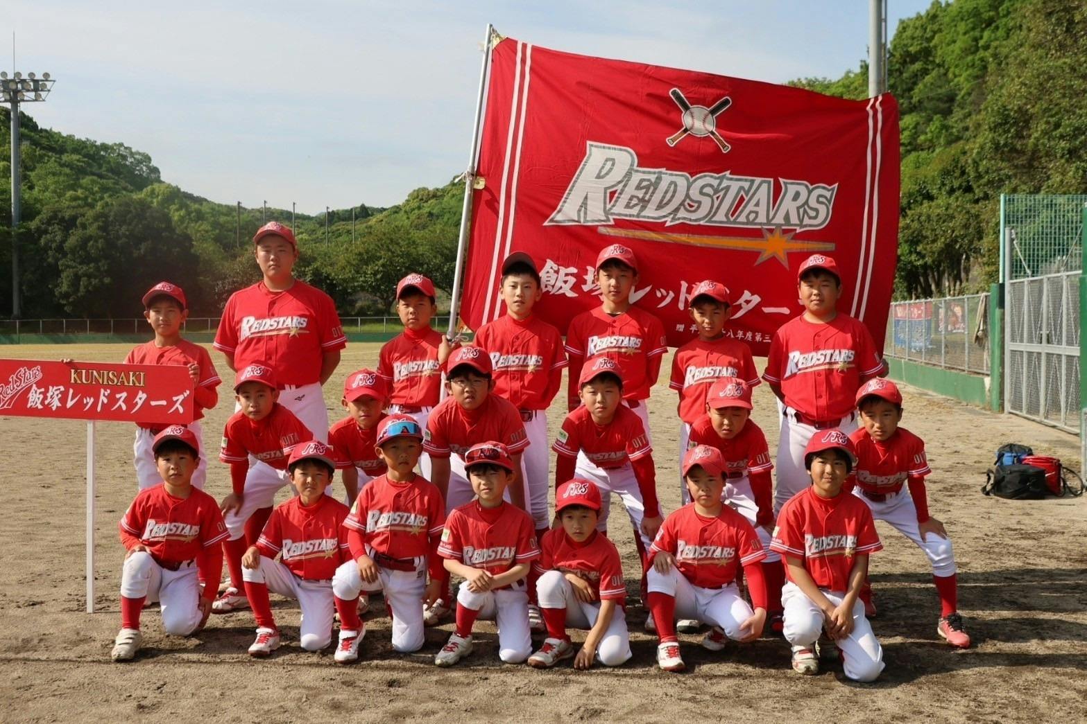 大分県国東市の学童少年野球チーム「飯塚レッドスターズ」。 令和6年6月現在、部員22名です。「何でも一生懸命」を合言葉にして、強いチームになれるよう練習に頑張っています。