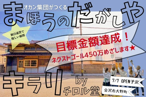 【ネクストゴール450万円に挑戦中!】2022年7月7日七夕に、金沢市大野の地に独自通貨を用いてやさしい循環を作り出す『まほうのだがしや』をオープンしたい!オカ...