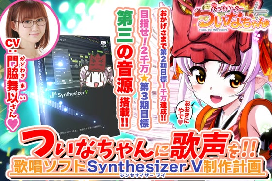 節分イメージキャラ「ついなちゃん」を歌わせてあげたい!声優門脇舞以さんの声で、歌声合成ソフト『SynthesizerV』音源を制作します(所謂ボカロのようなソフ...