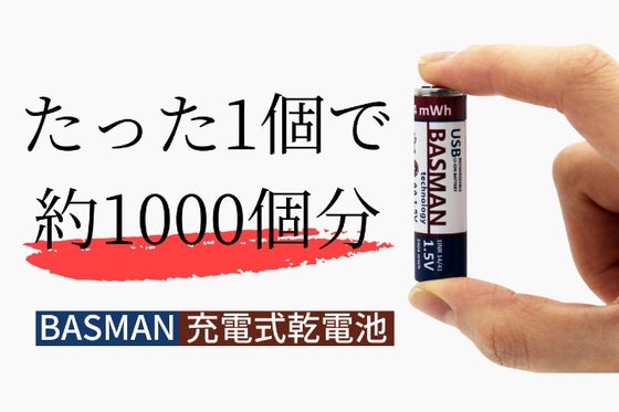 USBケーブルでたった1時間で簡単フル充電 可能!充電中は緑色のLEDライトが点滅します。BASMAN乾電池はなんと1000回以上充電の繰り返しができ、1.5V...