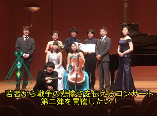 クラシック音楽を通し、若い音楽家から戦争の悲惨さを改めて考え直す演奏会を開催したい。 2018年3月に広島県で同じコンセプトの演奏会を開催。再演の声を多く頂い...