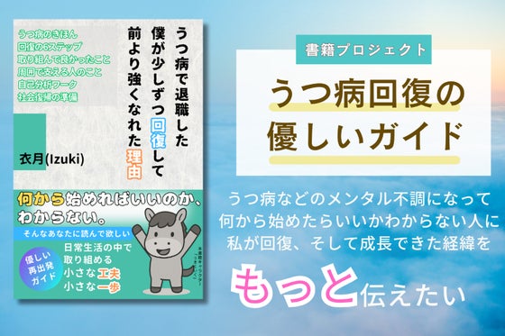 うつ病による離職・引きこもりを経て、いま再び社会とつながろうとしている当事者が、経験と日々の工夫をまとめた実践エッセイ書籍の出版に挑戦します。 本の普及やサービ...