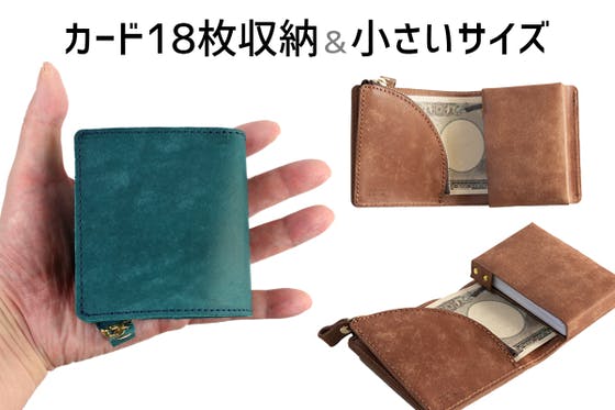 開くだけの二つ折り財布。「小さい」「大容量」「使いやすい」を実現。カード10枚の収納はめくるだけ。小銭入れは30枚。お札は20枚まで収納できます。ファスナーの引...