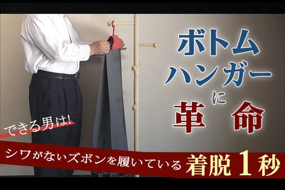 「サッと吊り下げて」「スッと外す」まるでマジックを見ているようなニュータイプの吊り下げハンガー。折りしわ・挟みしわと無縁の、今までにない画期的なボトムハンガーで...