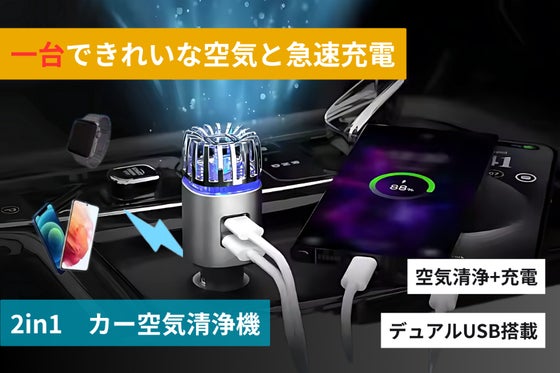 【車内をもっと快適に】2in1カーチャージャー&空気清浄機で、ドライブ中も清潔・安心・便利!