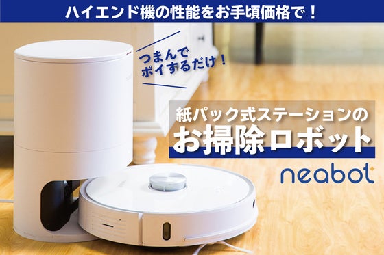 便利なロボット掃除機ですがゴミ処理は必要ですよね。「neabot」ならゴミ捨てが1〜2ヶ月に1回でOK!わずか1回の走行での間取り把握や、ゴミを密閉紙パックに自...
