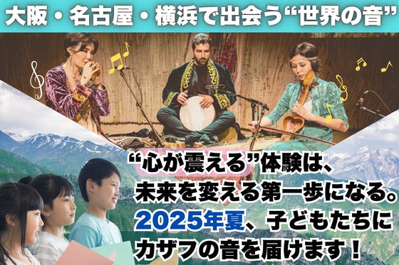 草原の風が奏でるカザフ音楽を、子どもたちの手と心に。この夏出会う“世界の音”を、あなたの応援で届けてください。