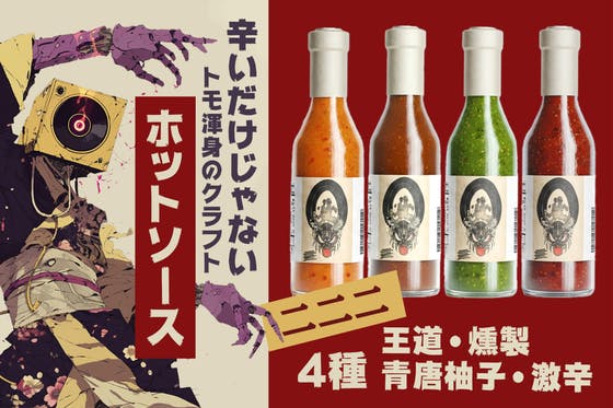 「二二二」で生まれたホットソースを商品化します。店主・Tomoが考案した4種(王道・燻製・青唐柚子・激辛)の味をより多くの人たちに届け、みんなの心に火をつけたい...