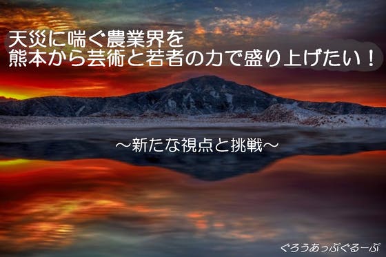 このプロジェクトでは、熊本を起点に「芸術文化の芽を花開かせたい!」「被災により衰退が加速してしまった農業漁業を盛り直そう!」という気持ちを元に起こしたプロジェク...