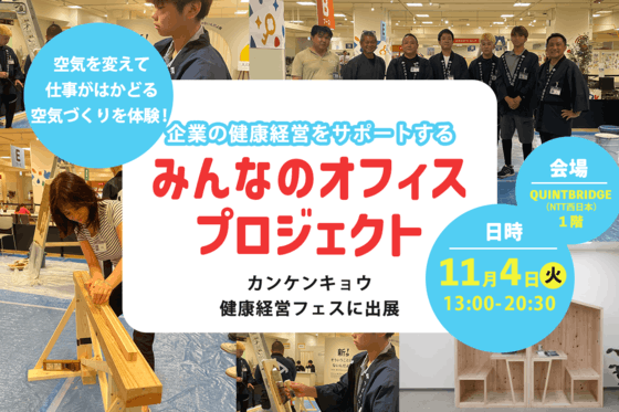 自然素材を使った空間づくりで、働く人の心と身体をほぐし、個性が輝く共生社会を実現したい。11月4日に大阪京橋のQUINTBRIDGE(クイントブリッジ)にて出展...
