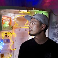 1980年生まれのAB型。上海、福岡で活動。大学卒業後、単身中国に渡り、建設会社でランドスケープのデザイナーとして従事。プロジェクトで出会った旧クロアチアの彫刻家(Drago Marin Cherina )の元でアシスタントとして経験を積み、上海にてギャラリー兼シェアスペースをオープン、杭州の中国美術大学教授のアーティストレジデンスプログラムの参加をきっかけに香港のギャラリーと契約後、上海現代美術館での個展やウィンドウディスプレイなど、幅広く活躍。現在では、自身のバックグラウンドを反映しつつ、その土地にある廃材を再利用し作品を制作。大胆な発想で創作される制作過程は、素材や方法に捉われず自由で独創的。国内外を問わず、ライブペイントや壁画、空間を使ったインスタレーションなどその現場によっての制作をスタンスとする。