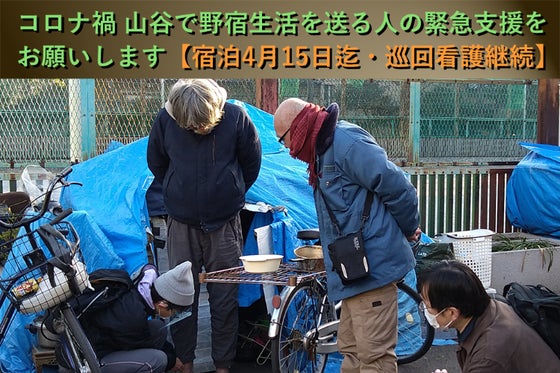 【緊急宿泊4月15日迄・巡回看護とごはん配り継続】 緊急事態宣言下で山谷で野宿をする人たちの状況が厳しくなっています。「一時的に宿泊させてもらえないか」「自分よ...