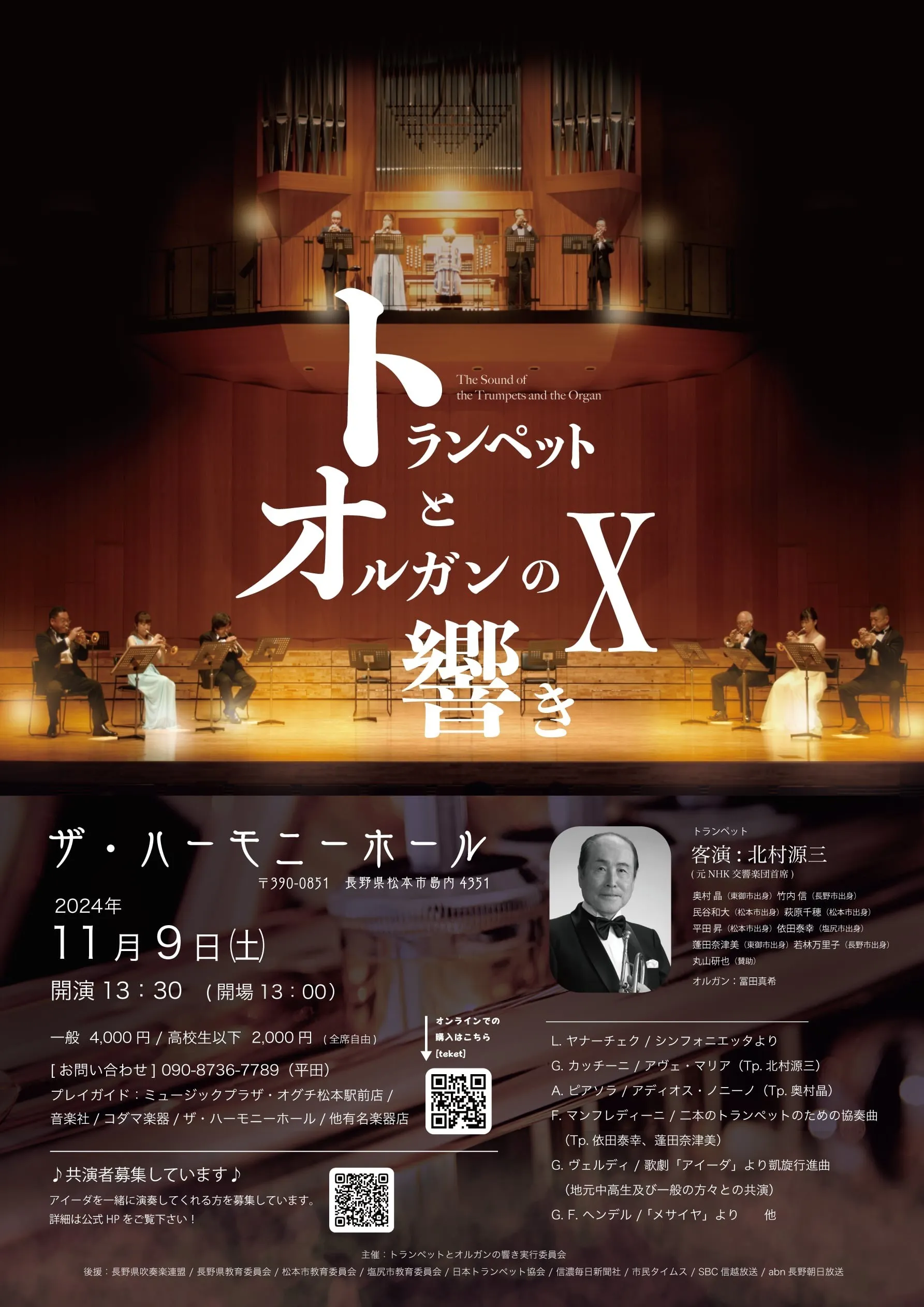 長野県出身のプロトランペット奏者と松本市音楽文化ホールのパイプオルガンによるコンサート「トランペットとオルガンの響き」を継続的に開催していきたい!その為に、本年...