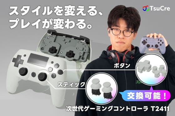 「壊れたら買い替え」じゃなくて、「直して、カスタムして、もっと長く愛せる」コントローラーを。TsuCreはスティックもボタンも外装も交換できるT2411を開発し...
