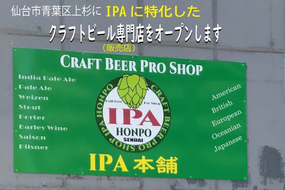 はじめまして。クラフトビールの中でも最も人気のあるスタイルのインディアペールエールを中心に取り扱う、クラフトビール販売店を仙台市につくります。店内では購入して頂...