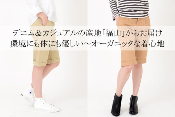 ストレッチの効いた上質コットン素材「エルパソオーガニック」を使用した「ハーフパンツ」~ゆったりめの穿き心地と大人でも抵抗なく穿ける膝くらいの丈のショートパンツと...