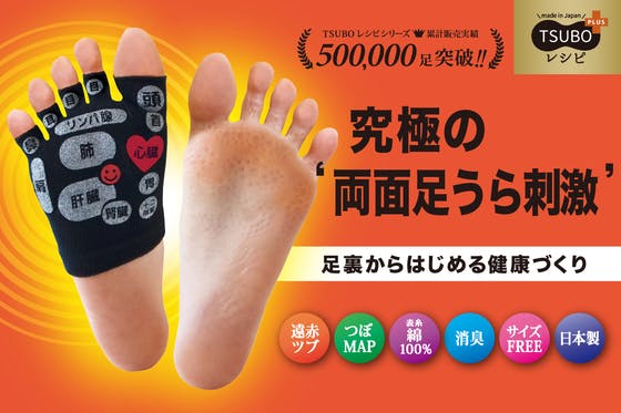 老舗靴下メーカー考案の足裏刺激ソックスです。 外側は足つぼのイラスト 内側は遠赤パウダー配合の凸つぶが足裏を刺激してくれます。 自社工場で生産のこだわり靴下...