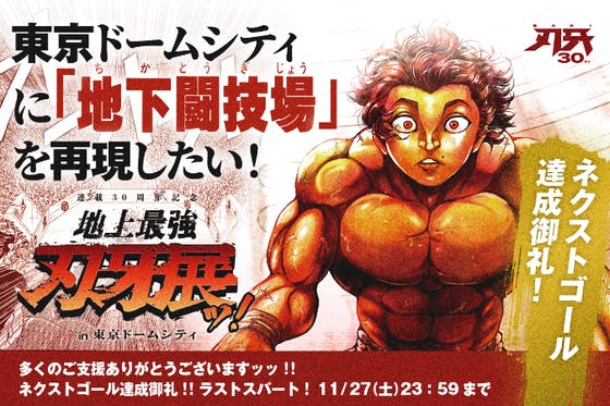 『刃牙』シリーズ30周年を記念し、過去最大の展覧会「連載30周年記念 地上最強刃牙展ッ!in東京ドームシティ」の開催が決定ッッ!!この展覧会会場内に、「地下闘技...