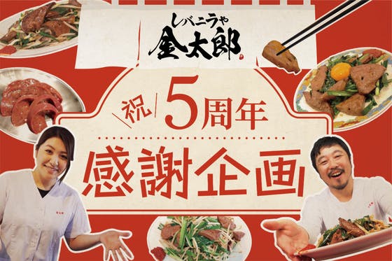 『レバニラや金太郎』5周年を記念して、感謝企画を立ち上げました!目玉は、自宅で『レバニラや金太郎』のレバニラを再現できる「レバニラキット」を、感謝価格の39%O...