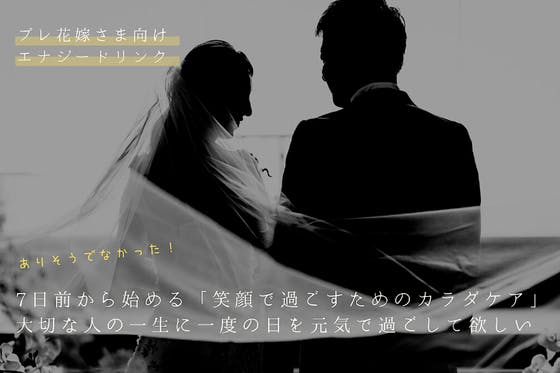 結婚式を控えるプレ花嫁さまに、大切な1日を笑顔あふれる最高の日にして欲しい。そんな想いから、結婚式7日前から飲み始めるドリンク「備える7日間」を開発しました。結...
