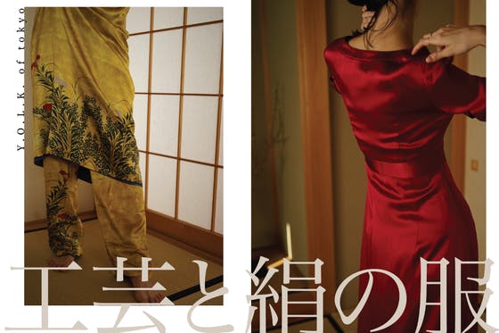日本の、美と、服に、陰影や、季節の移ろいを。 美しい工芸や表現、そして価値観をお洋服に落とし込みました。 素材に絹、麻などを使いながら、職人手作りの伝統工芸漆のボタンと組み合わせるY.O.L.K.は、"Years Of Living Kindly" という、日本のわびさびを敬うメッセージと共に四季や日本文化を感じられる服を作ろうとしています。 服のところどころに使われる漆は、何層にも塗られ、磨かれる、天然の塗料であり、色は、経年変化します。塗りあがった後も紫外線など自然の影響をうけて、漆は長い時間をかけてゆっくりと塗膜が固化して、透明に近づきます。これにより黒、朱、白といった色に奥深さがでてくる、漆はまさに、「生きた素材」です。 また、Y.O.L.K.のワンピースやパンツは、しっかりとした厚みのある二層の絹生地を使うことで、表にはオリジナルのプリントを施しながらも、完全にリバーシブルな裏地も表にかえして楽しむことができます。 そのデザインには、裏と表地にのそれぞれに、 日本の「陰陽」の精神を吹き込みながらも、 2通りの着こなしが可能なリバーシブル性には「わびさび」の精神を、 そこには、有限な材料から、可能な限りの豊かさと魅力を引き出す、 日本ならではの豊かさの定義を、参考にしました。