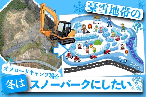 ショベルカーさえあれば、4月まで大雪に覆われるオフロードコースと畑付きのキャンプ場「農園キャンプ場 えちご四駆村」を”スキー場ではない”かまくら.雪像.雪中キャ...
