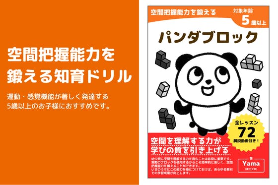 『パンダブロック』は、シンプルなブロックで遊びながら、空間把握能力を育むことができる知育ドリルです!幼少期に空間を理解する力を育むことは非常に重要です。実際に黒...