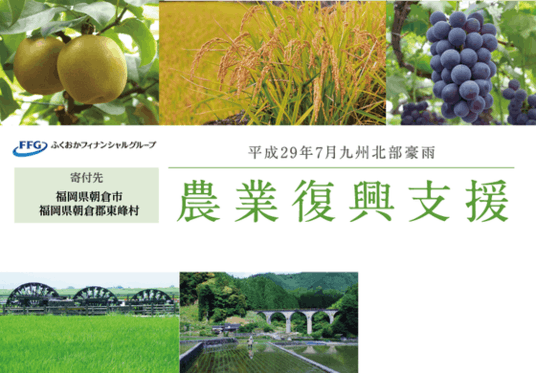 ふくおかフィナンシャルグループ(FFG)では、平成29年7月九州北部豪雨にて特に被害が大きかった「朝倉市」と「東峰村」の基幹産業である「農業」の復興を支援するた...