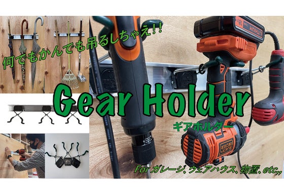 清掃用具、工具類、農機具、フライパン、傘、ビリヤードのキュー、ラケット、竹刀、バット、ギター何でもかんでも簡単に吊るせちゃうギアホルダー。壁が一気に収納スペース...