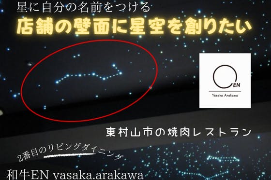 ご自身や会社のお名前を星に付けませんか!?高い天井と大きな壁面に星空をつくるにあたり 和牛EN yasaka.arakawaに自分の星が輝きます 星空を見上げて...