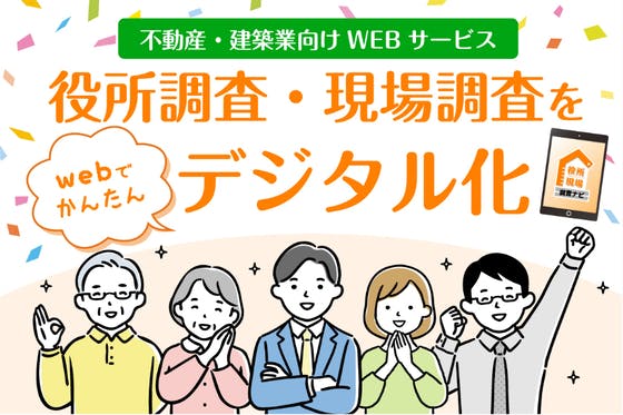 役所調査・現場調査をwebでかんたんデジタル化します!デジタル化することで作業効率が大幅にアップして、調査にかかる時間や手間、ミスを減らすことができます。初期費...