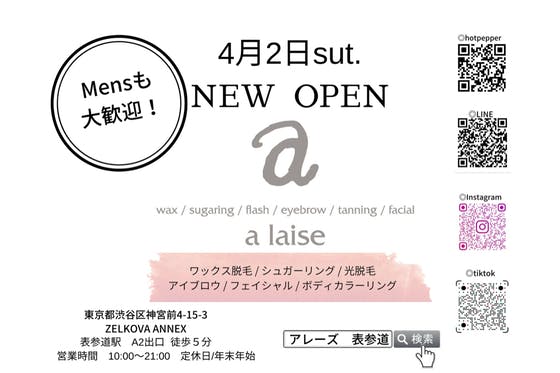 恵比寿の老舗サロンで長年働いた2人が、4/2脱毛サロンをオープンしました! しぶといムダ毛に悩む女性はもちろん、男性や話題の介護脱毛、LGBTの方にも気軽に通...