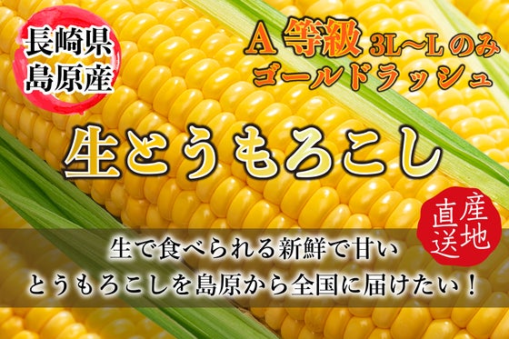 九州長崎県島原半島で育つとうもろこし。 糖度の高い立派なとうもろこしをぜひ新鮮な状態で全国の方々にお届けしたいという事で地元農家さんの協力のもとこのプロジェクト...