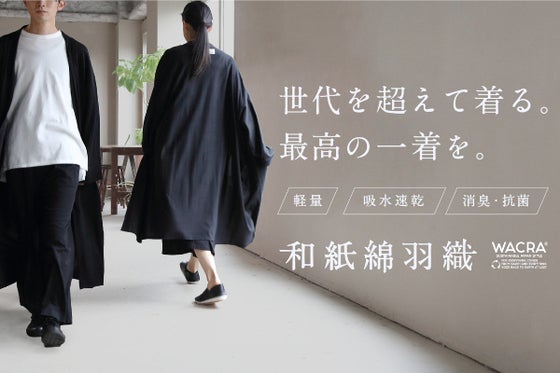 繊維技術と職人技、3年がかりで生み出した和紙と綿のハイブリッド生地で作る、法被由来のサステナブルアウター。老若男女問わず着られるスタイリッシュなデザインと、土へ...