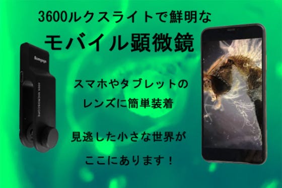 スマホ、タブレットを問わず簡単に装着出来る!本体にライトが付いていて鮮明な画像!400倍の倍率ですが、携帯のズームで800倍、1200倍も可能!