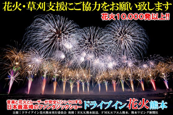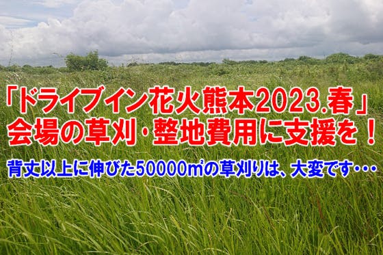 新型コロナウイルスイベント支援プロジェクトとして『ドライブイン花火熊本』を開催しております! 会場が広く約50,000㎡という土地の草刈・整地費用が莫大です。 ...