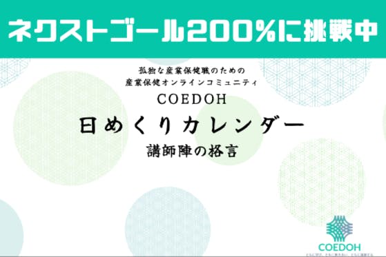 【おかげさまでご支援ありがとうございます。ネクストゴールに挑戦中!!】奮闘する孤独な産業保健職のために日めくりカレンダープロジェクト。毎日、ちょっと元気が出るよ...